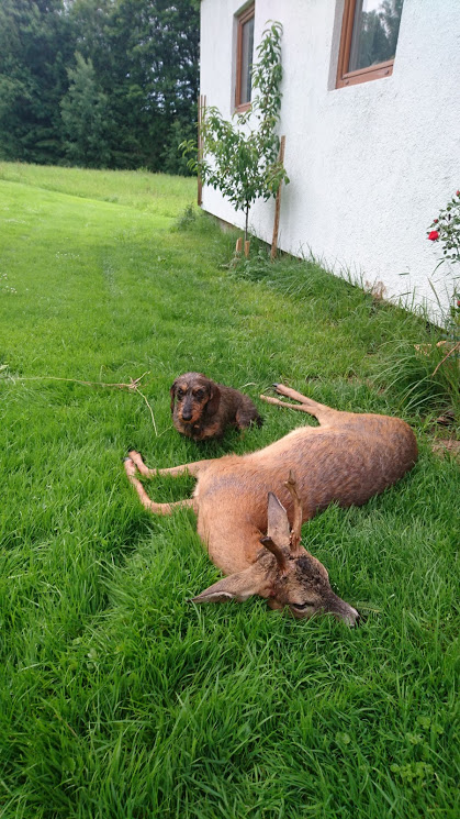 und ein angefahrenes Reh, dass zur Strecke